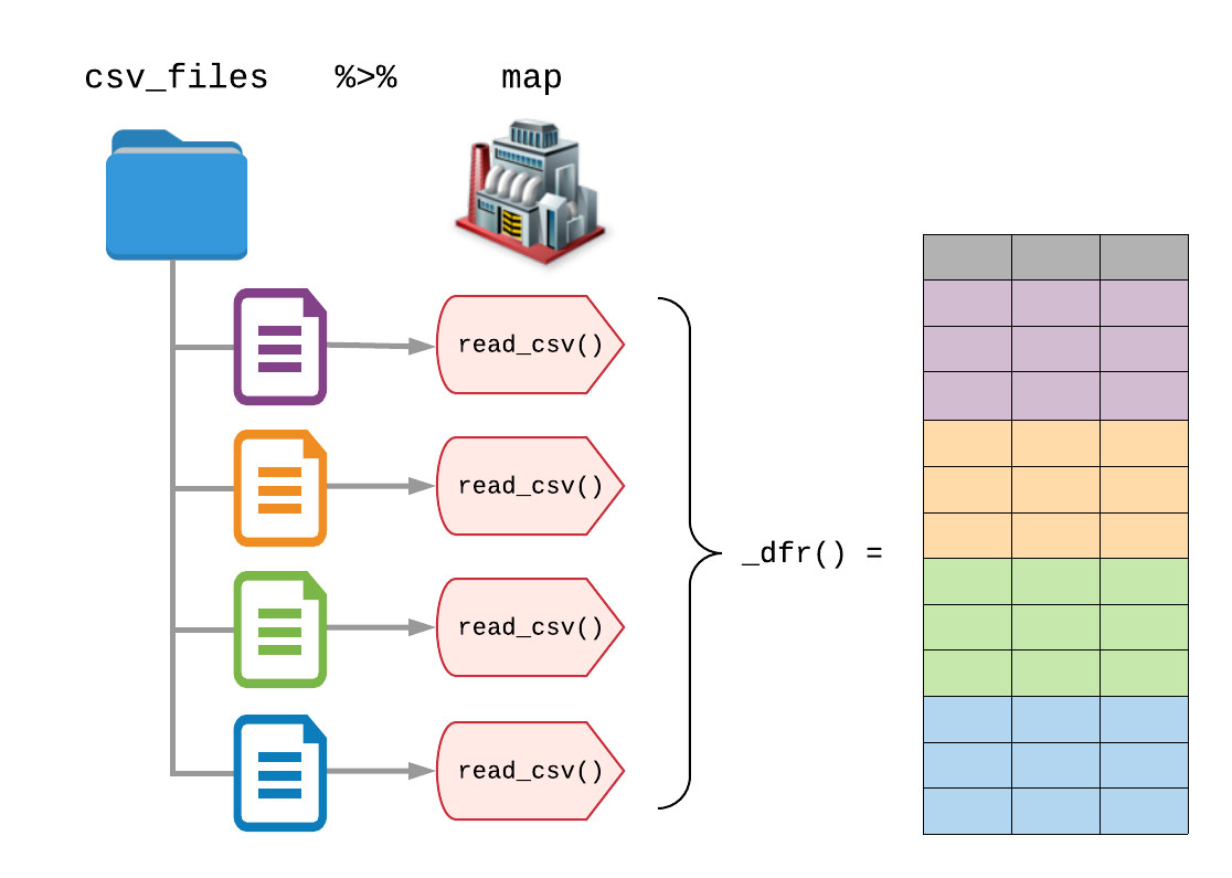 map() to solve for all elementspurrr packageWe have data from different countries in seperate .csv files that we need to combine in a single dataset for analysis
